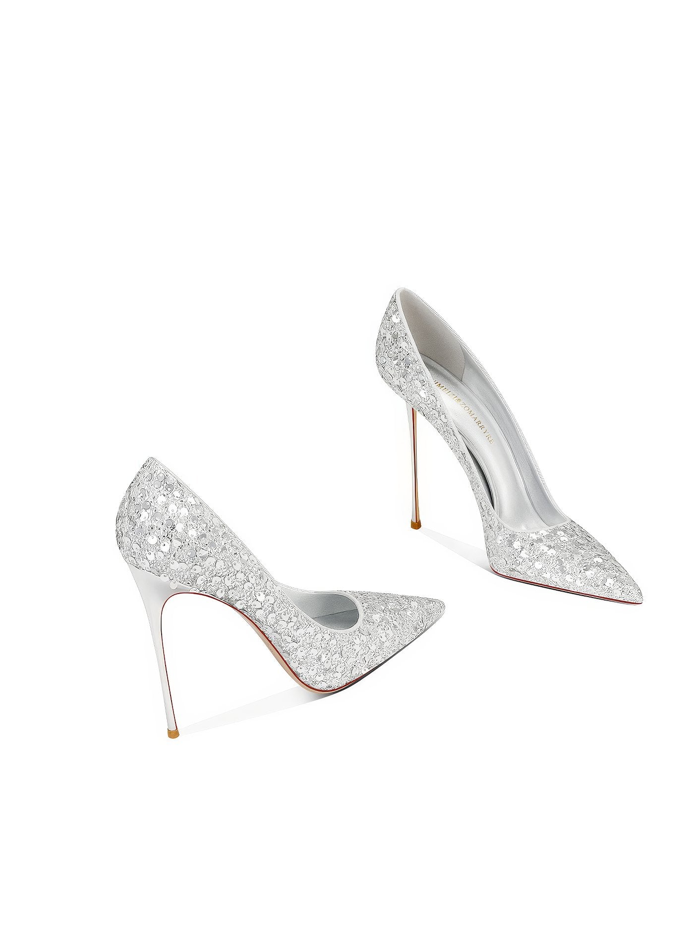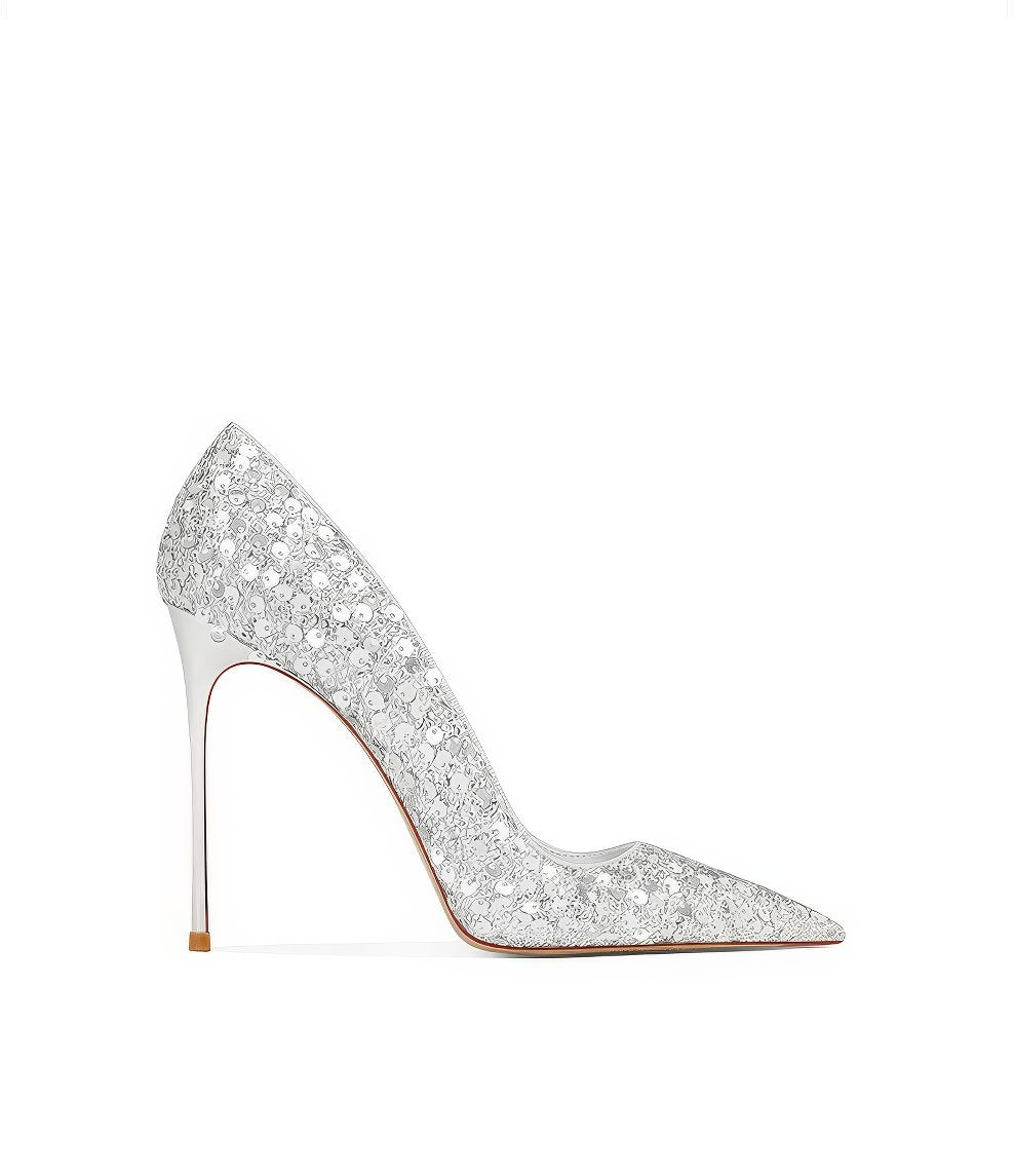 Pair them with a little black dress for a classic, chic look, or wear them with a bold evening gown for maximum impact. Step into elegance and shine with our Pointy Toe Sequin Detailed Stiletto Heels, and make every step a statement.