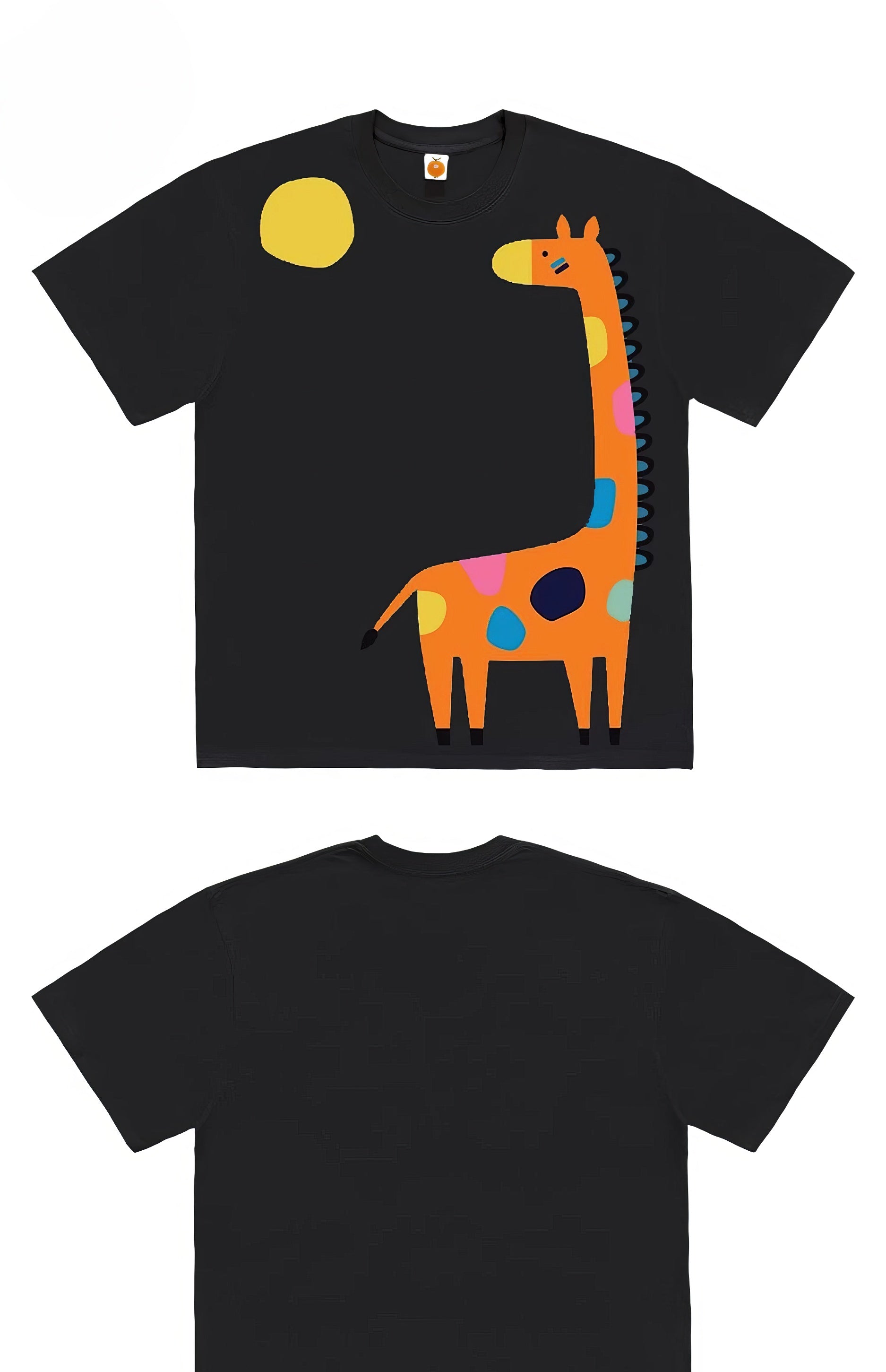 Quirky Giraffe Graphic Tee with Abstract Design Print
