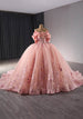 Step into a fairytale with our Ruffled Layered Off-Shoulder Pink Floral Quinceañera Ball Dress, style M9N0O. This enchanting gown features a soft pink hue with off-shoulder ruffled layers that cascade elegantly, creating a romantic and dreamy look. Adorned with delicate floral details, this dress is perfect for making a statement on your quinceañera.