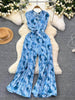 Indulge in the joy of summer fashion with our Sleeveless Geo Floral Print Pleated Hem Flared Jumpsuit. It's time to embrace your inner fashionista and let your style shine with unmatched grace and charm