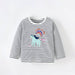 Striped Long-Sleeve T-Shirt with Unicorn and Rainbow Applique