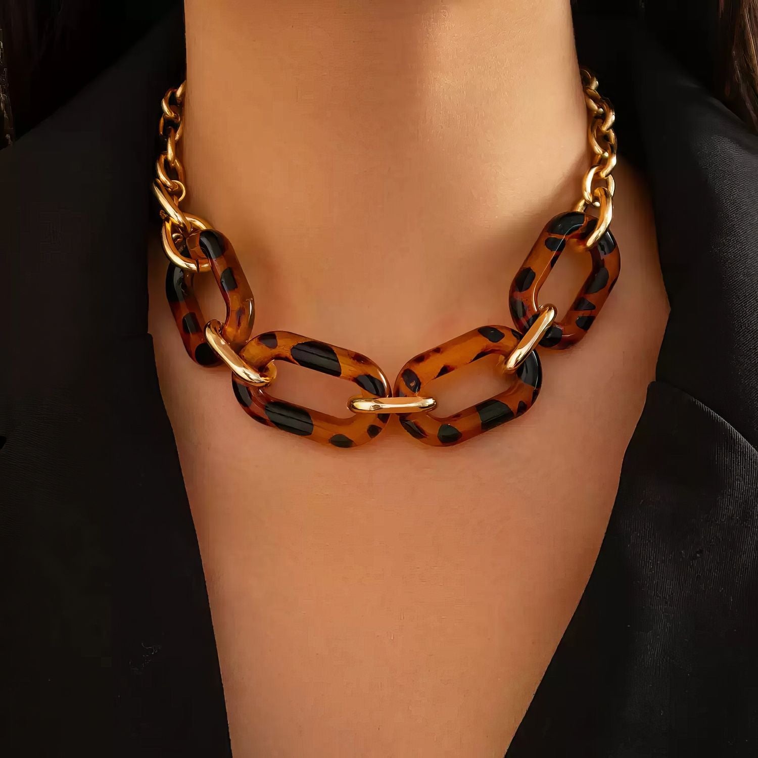 Chic, bold, and undeniably contemporary—the Tortoiseshell Resin and Metal Chain T-Bar Bracelet captures the perfect balance between classic charm and modern flair.