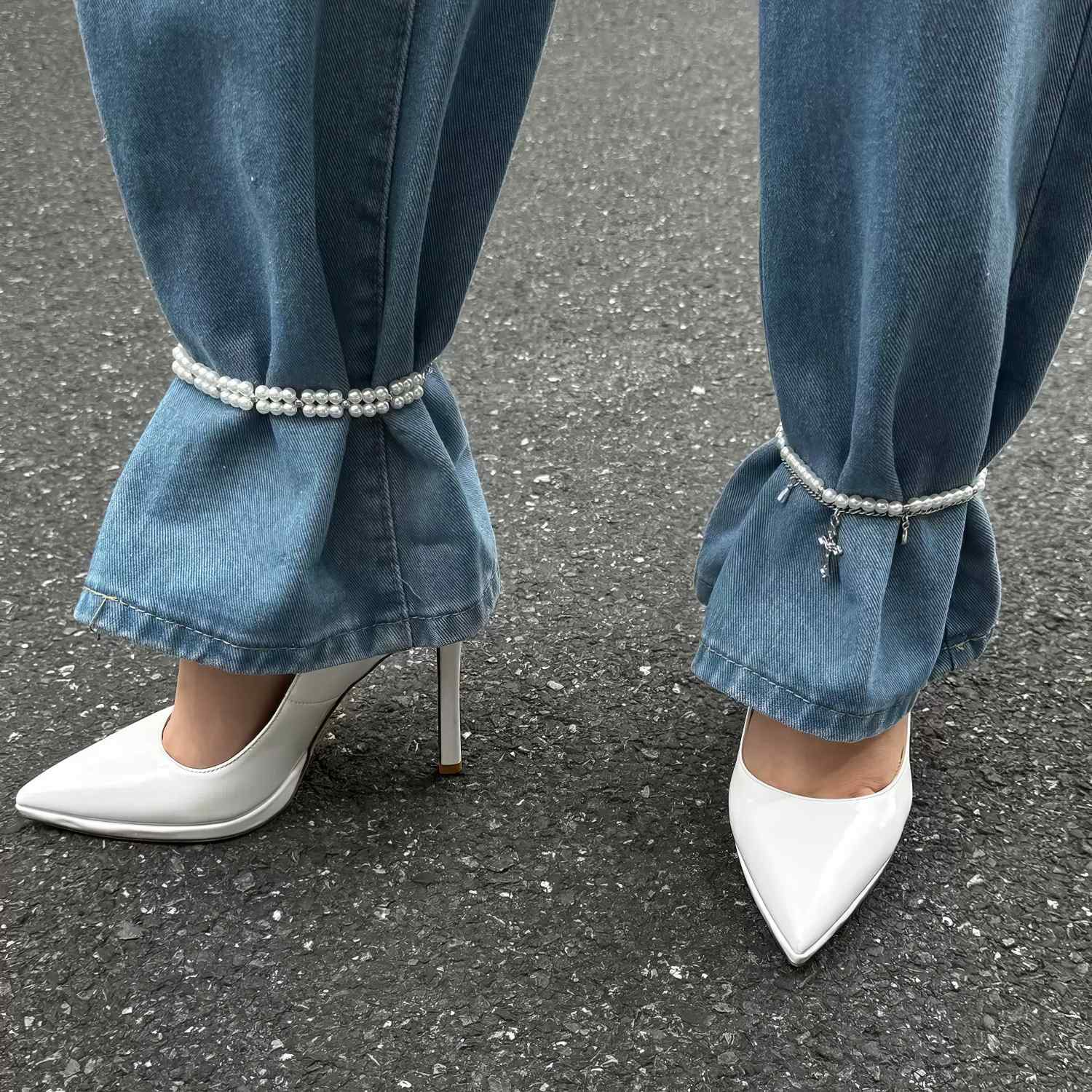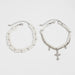 Grace your ankles with timeless charm through the Two-Piece Faux Pearl and Cross Charm Anklet Set, a perfect blend of elegance and symbolism. One anklet shimmers with lustrous faux pearls, while the other features a delicate cross charm suspended from a dainty chain—creating a beautifully layered look.