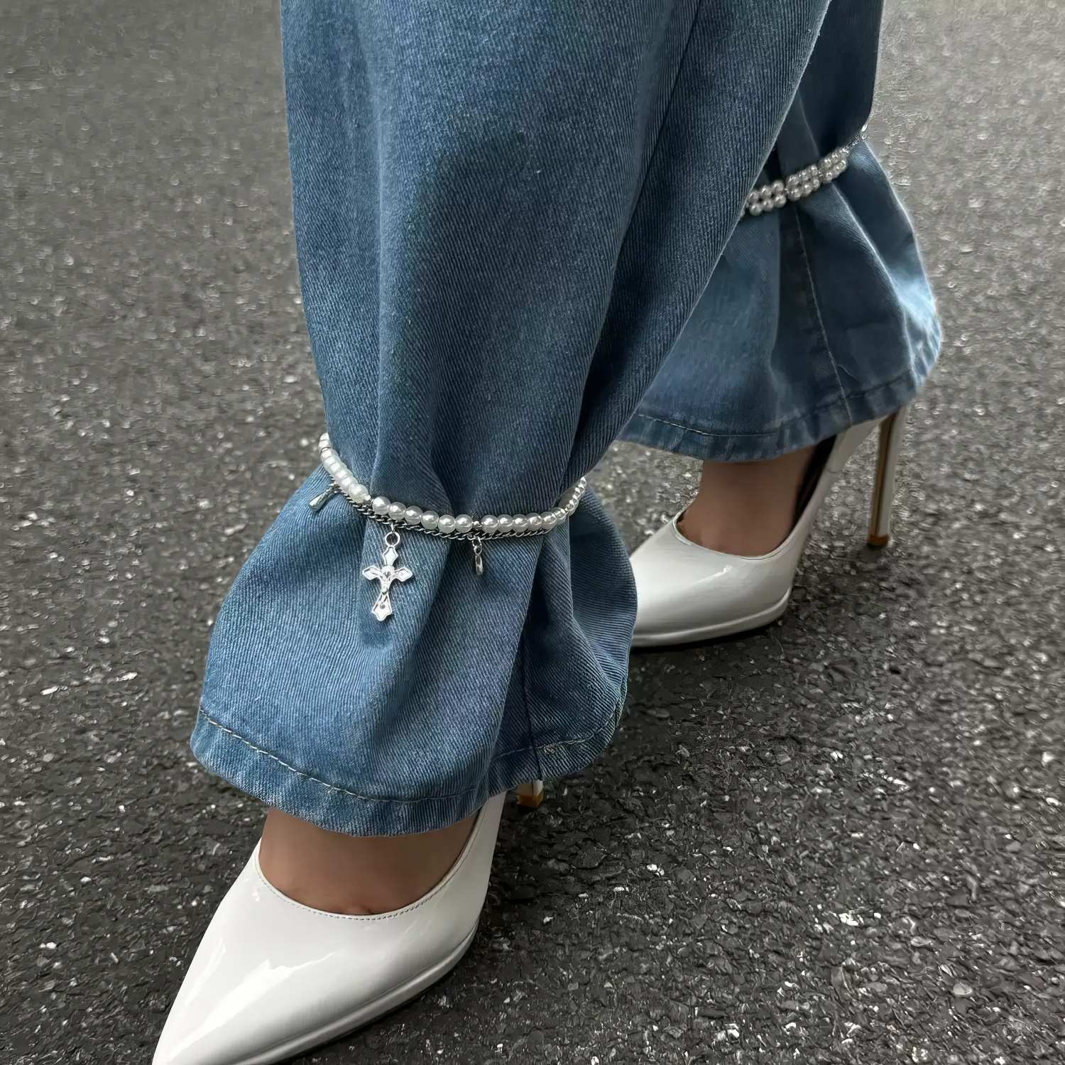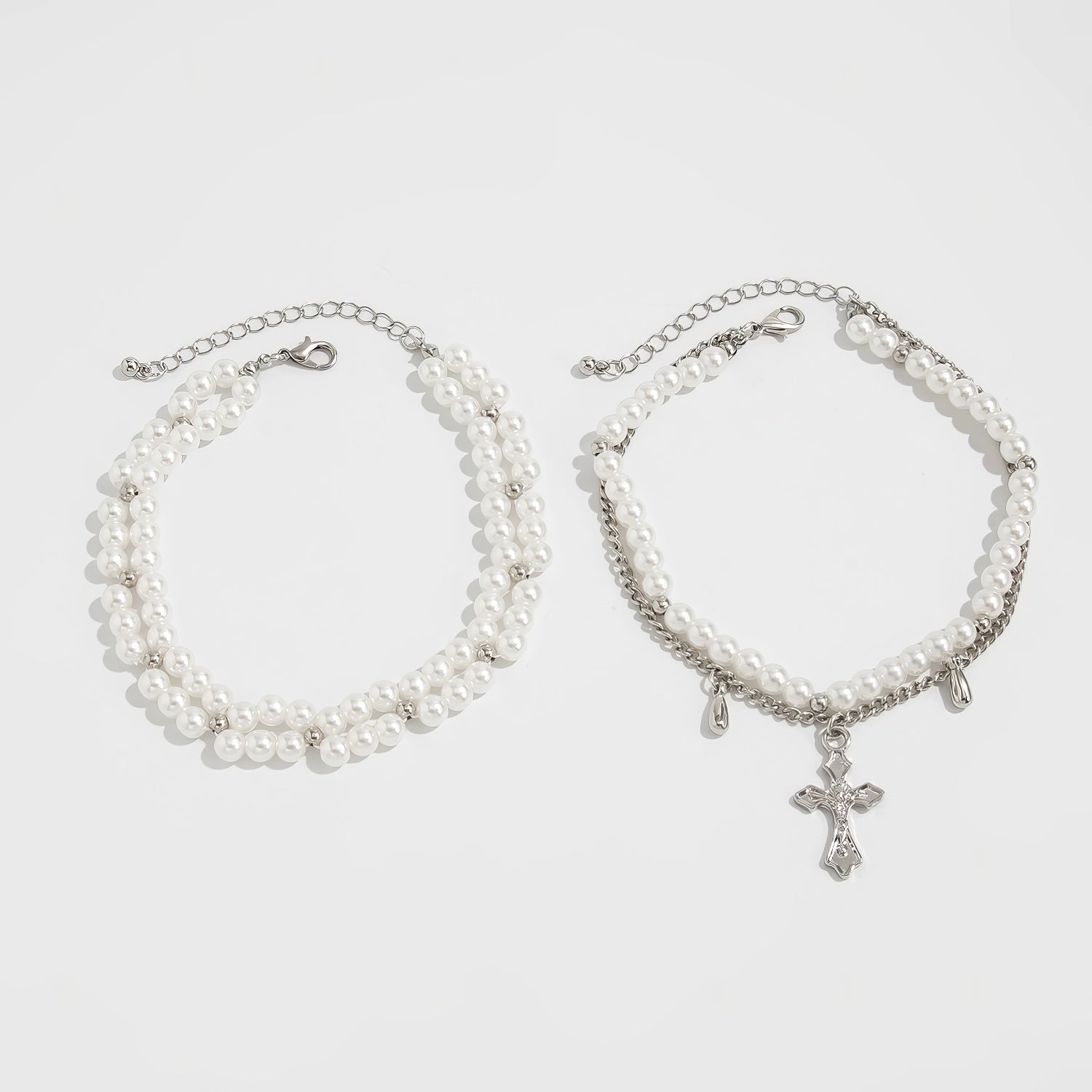 Chic, meaningful, and effortlessly feminine—the Two-Piece Faux Pearl and Cross Charm Anklet Set is a graceful finishing touch for those who cherish subtle sophistication.